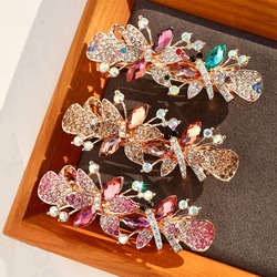 Moda mujer mariposa horquilla temperamento diamantes de imitación con incrustaciones pinza para el cabello Sudeste asiático niñas Cola de Caballo Clip primavera horquilla