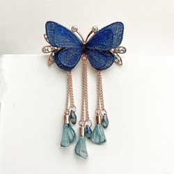 Pinza de pelo de mariposa bordada elegante, alas azules, pinzas para el pelo, horquilla de mariposa de doble capa, pinza de pelo con borla larga