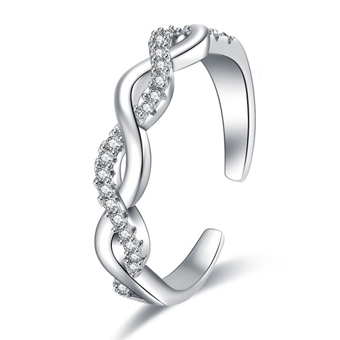 Anillo De Acero Inoxidable Brillante Ajustable Abierto Cuff Twist Ring Mujeres Chapado en oro Twisted Micro Pave Cubic Zircon Ring