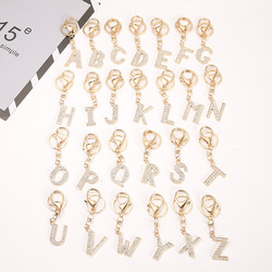 Venta caliente moda completo diamante alfabeto llave hebilla moda letra llavero Vintage Oro inicial llavero para mujer