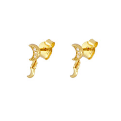 925 Sterling Silver Plated Minimalist Fashionable Petite Star and Moon Pendant Drop Earrings for Women Fine Jewelry Earring