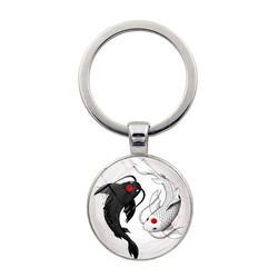 Yin Yang Tai Chi Symbol Keychain Charms Glass Cabochon Jewelry Cute Bag Pendant Keychain for Car Keys Key Ring Gift
