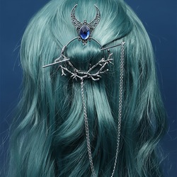 Unique Witch Hair Stick Crescent Branch Viking Rhinestone Beautiful Round Dot Crescent Branch Imitation Gemstone Glass Hairpin