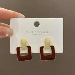 Maillard Retro Brown Oil Drop Square Earrings for Women Fashion Huggie Hoop Earrings Tiny Delicate Jewelry Dangle Drop Earring