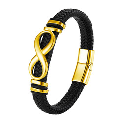 Bracciale Classico in Acciaio Inossidabile con Charm Numero Otto, Braccialetti in Pelle Intrecciata Nera per Amici e Mariti